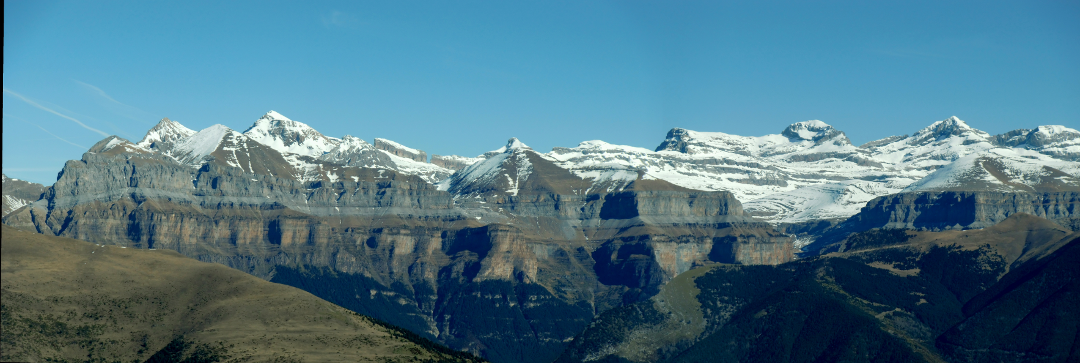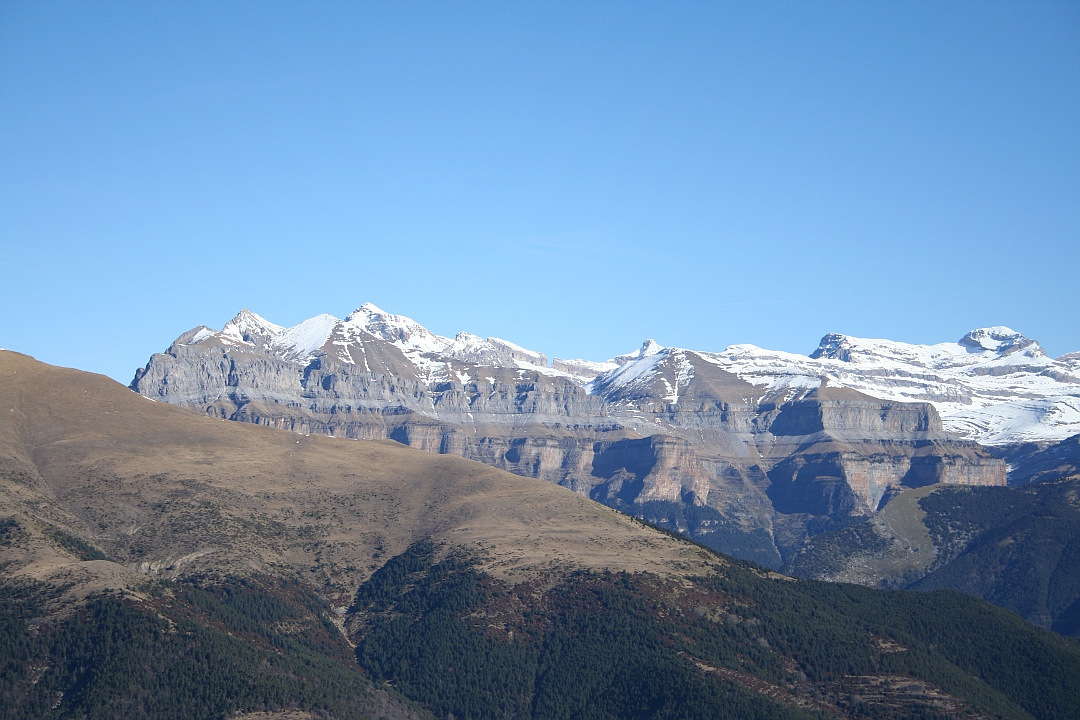 Vista de la Sierra de Guara a fondo: Tozal de Guara y Fragineto