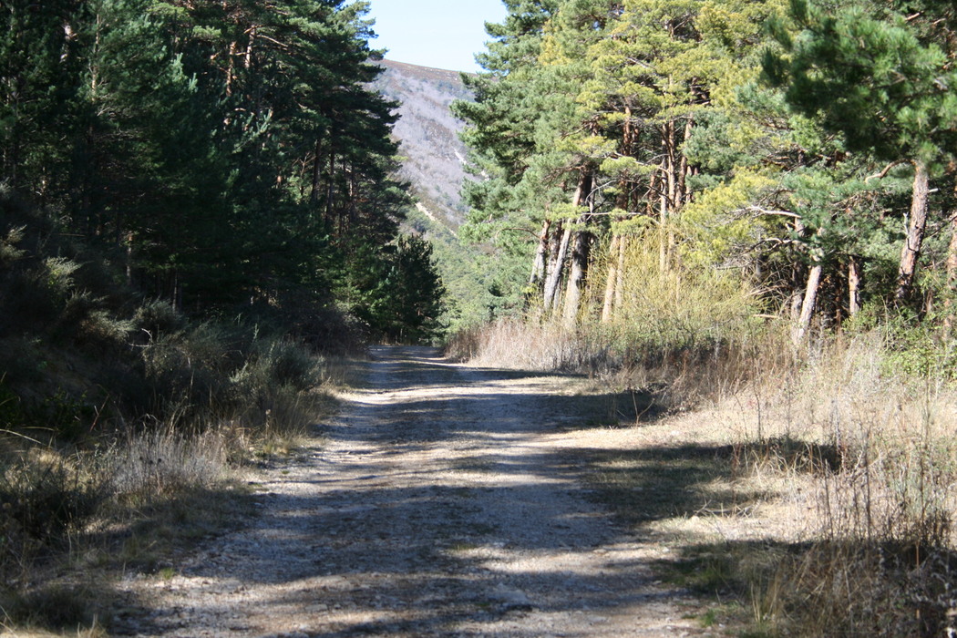 1 hora y 40 minutos Una vez finalizada la senda que atraviesa el prado conviene no perderse entre la multitud de caminos forestales que existen. El primero de ellos cogerlo a la izquierda y desviarse en el siguiente nuevamente a la izquierda siguiendo los mojones existentes.
