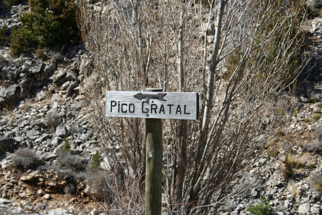 50 minutos Continuamos por la senda que posteriormente se transforma en camino, en el primer cruce que nos encontramos continuamos por la izquierda hasta llegar al Barranco de Forcegabrada y el letrero que nos da paso a la senda de ascensión al Pico Gratal