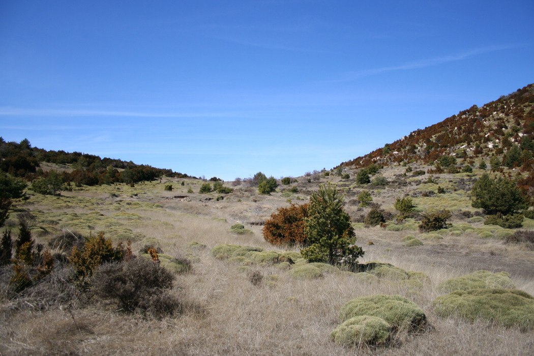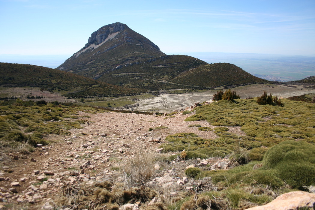Al final de la pista visualizamos nuestro objetivo solo quedara descender la vaguada, atravesando la Fuente las Fuentes y comenzar el ascenso al pico por su vertiente norte entre pequeña vegetación
