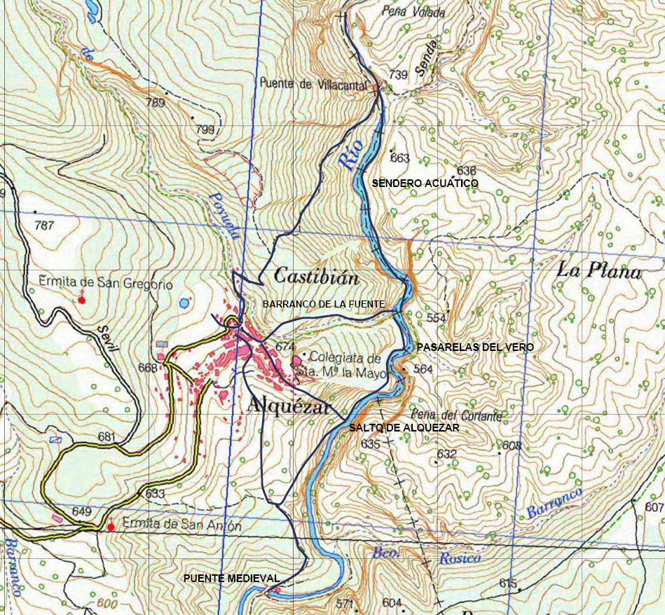 La excursión que proponemos nos permitirá adentrarnos y disfrutar de la parte final del tramo deportivo del cañón, entre sus grandes paredes rocosas y badinas de aguas cristalinas, sin la necesidad de guías ni equipación especial, portando únicamente calzado y ropa adecuada para una la realización de una corta caminata por terreno pedregoso hasta llegar al río y que nos permita además cruzar en varias ocasiones el cauce del río y por supuesto bañador si queremos disfrutar de un refrescante baño. El puente románico de Villacantal, el salto de agua de Alquezar, el molino, abandonado en la actualidad y el tramo de pasarelas aéreas sobre el Vero, son unos alicientes más a añadir a la ya de por sí interesante excursión.