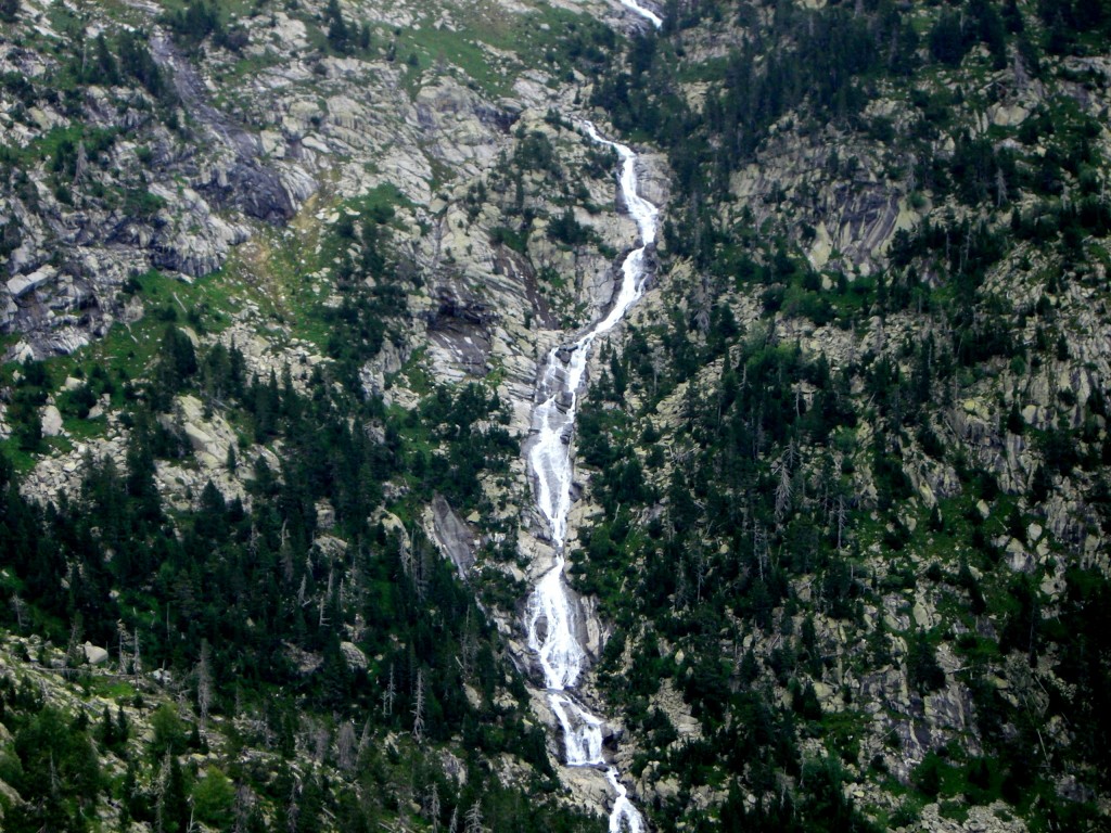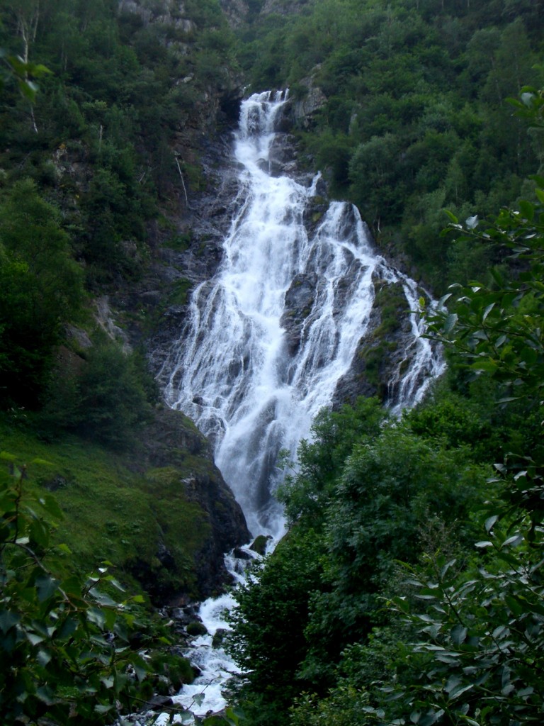 La pista nos conduce rapidamente hasta el puente de la Aigüeta de Eriste continuando la ruta a partir de aqui por sendero. Tras ascender unos metros por la senda nos encontraremos un pequeño desvio a la izquierda que nos llevará hasta el mismisimo centro de la cascada. Es muy recomendable hacer esta pequeña incursión pues la vista de la cascada desde aqui es espectacular.