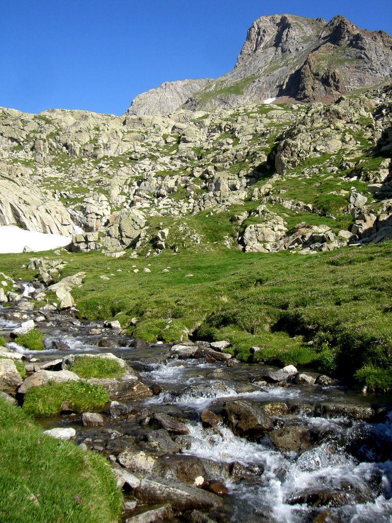 Tomado el desvio descendemos durante un pequeño tramo hasta alcanzar el Torrente de Llardaneta procedente del Ibón de Llardaneta.