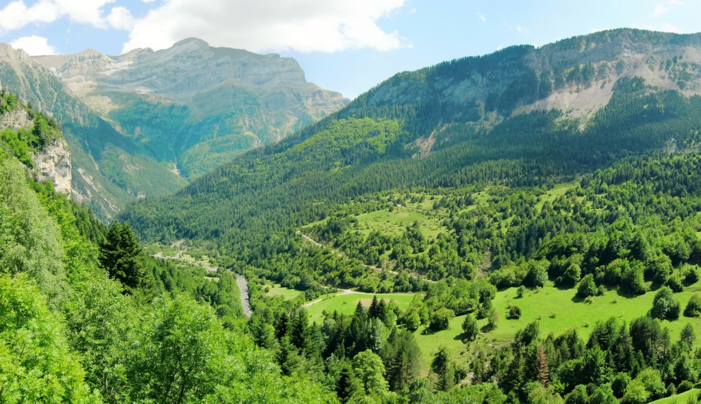 Tras unos minutos de ascensión entre pinos y abetos, la pista nos ofrece unas magnificas vistas del Valle de Bujaruelo.