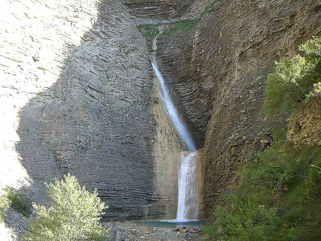 Conjunto de cascada y badina situadas entre Sabiñanigo y Biescas.