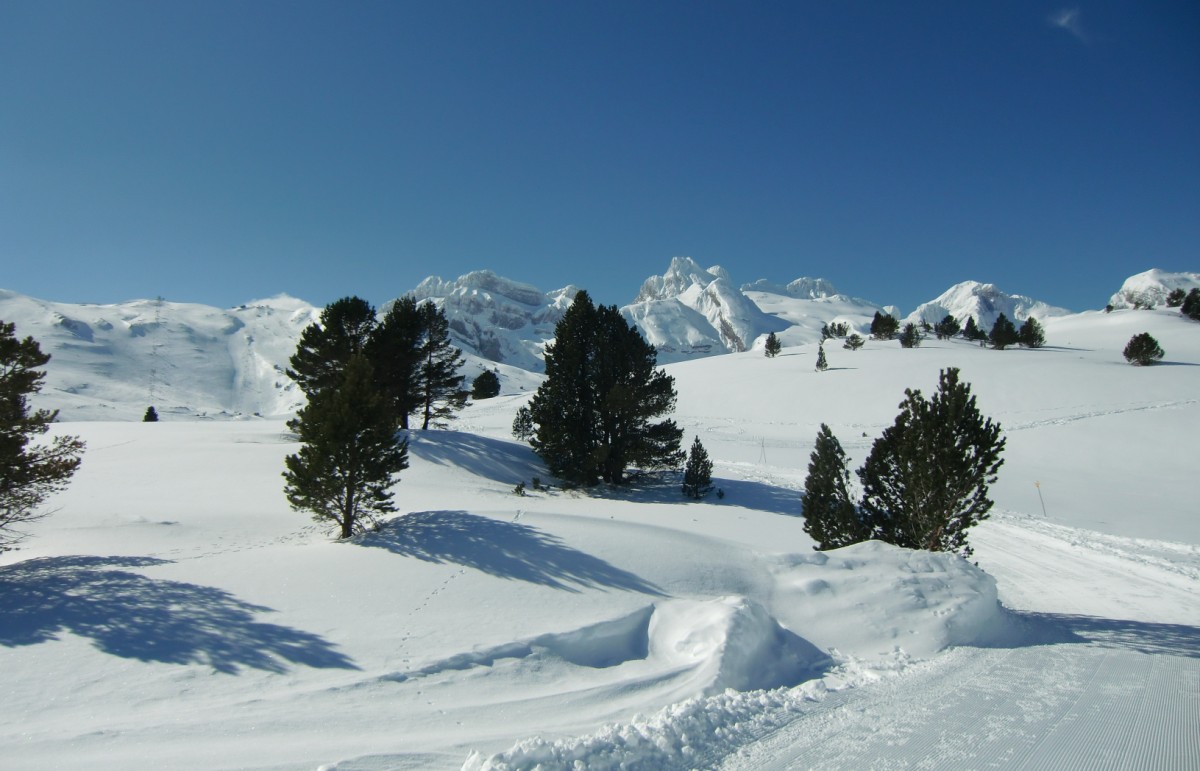 Ruta de raquetas de nieve por el circuito balizado de la estación de ski nórdico de Le Somport. Excursión ideal para iniciarse en este deporte o incluso para practicar con niños ya que se encuentra totalmente marcado y presenta un desnivel bajo.