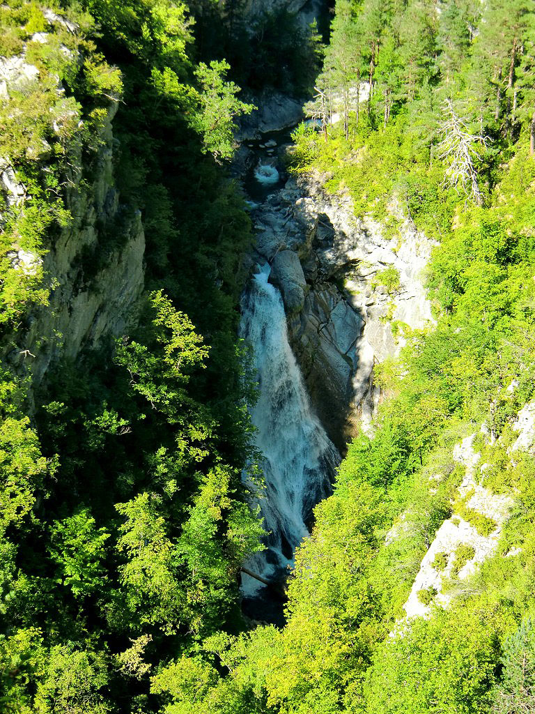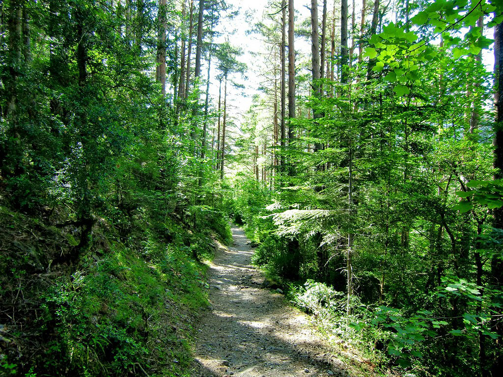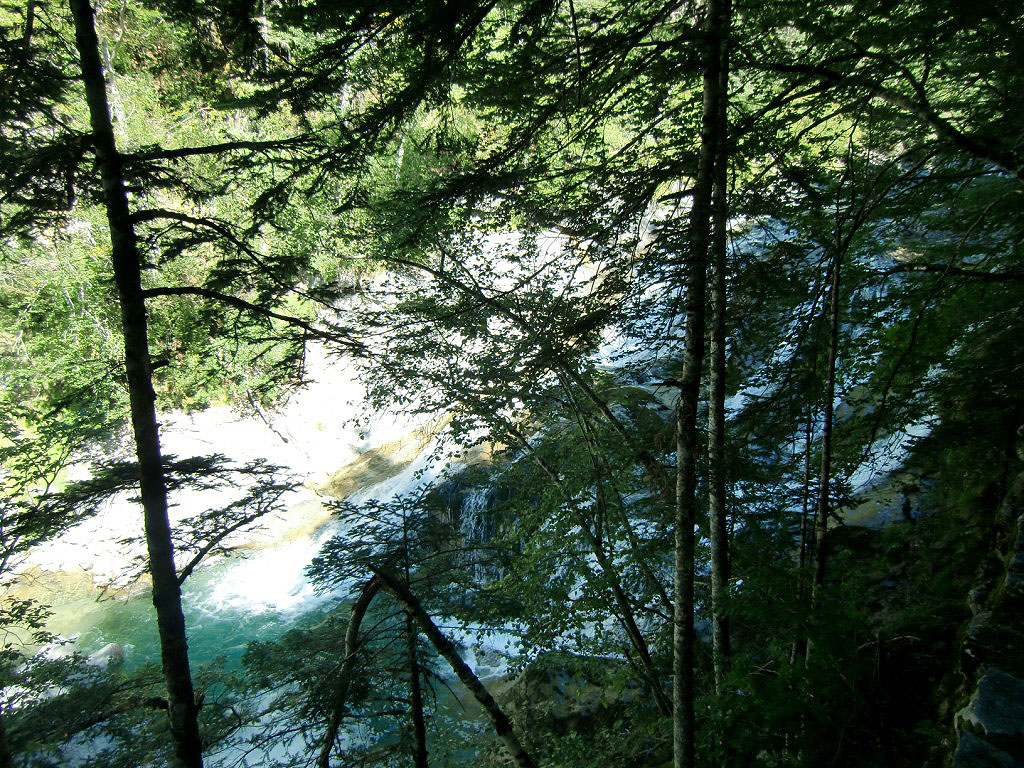 El primer tramo del sendero GR-11, asciende por moderada pendiente hasta alcanzar un tramo más llano desde el cual tendremos durante un corto tramo de recorrido unas magnificas vistas de la confluencia de los ríos Ara y Arazas así como de la Cascada del Molinieto.
