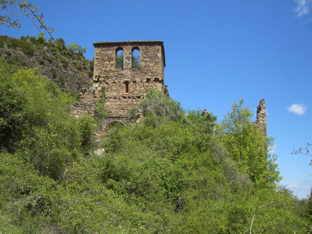 Desde la cascada continuaremos la ascensión y en apenas 20 minutos más alcanzaremos el pueblo abandonado de Salinas Viejo del que ya solo queda en pié la torre de la iglesia.