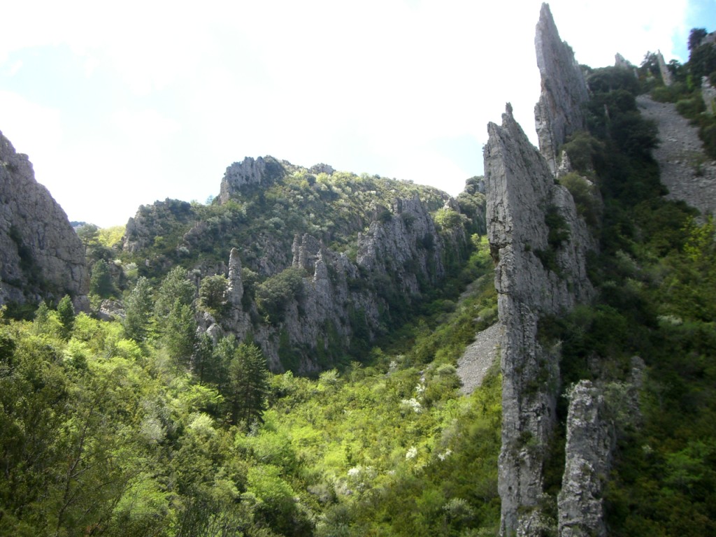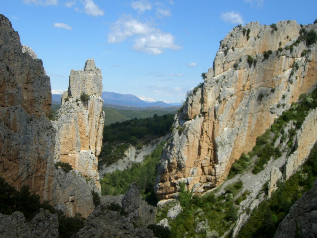 Al atravesar la profunda cortada creada por la acción erosiva de las aguas del Barranco de Salinas nos encontramos con las asombrosas formaciones rocosas compuestas por paredes de piedra dispuestas verticalmente formando singulares crestas rocosas, sobre las que habitan algunas colonias de buitres.