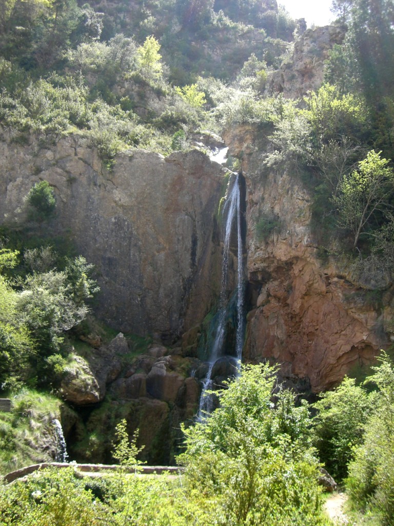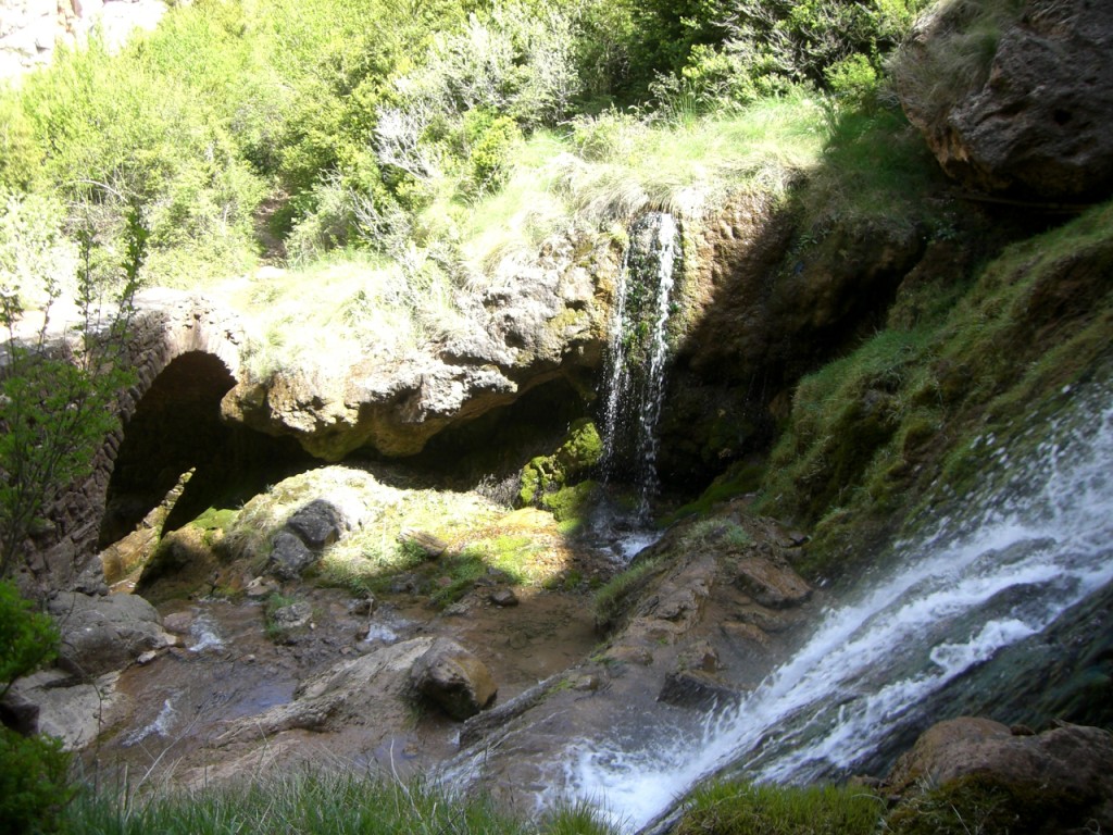 Continuando unos 10 minutos más por la senda que atraviesa la foz de Salinas alcanzaremos la Fuente de la Rata, lugar en el que precipita la vistosa cascada del Barranco de Salinas junto a un pequeño puente de piedra.