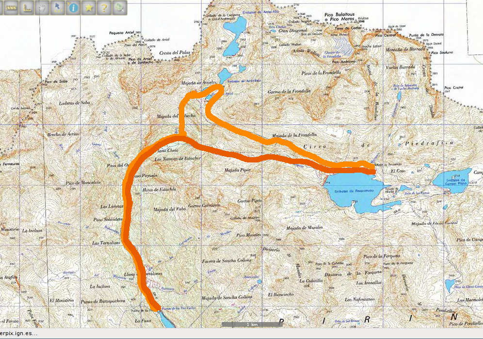 Comenzamos nuestra excursión tomando la senda GR-11 que nos conduce hacia el refugio y embalse de Respomuso, la senda suave en su principio transcurre paralela al río Aguas Limpias, poco a poco tomara moderado desnivél acercandonos a el Paso del Onso y el Llano Cheto, momento en que tras una pequeña pendiente veremos el cartel del desvío hacia los Ibones de Arriel.