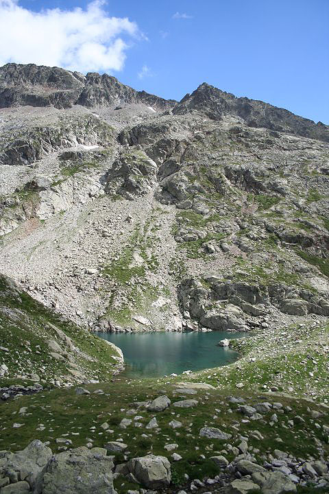 Siguiendo la senda y tras superar unos 80 metros de desnivel alcanzaremos el Ibón de Arriel Alto a los pies del pico Pallas.