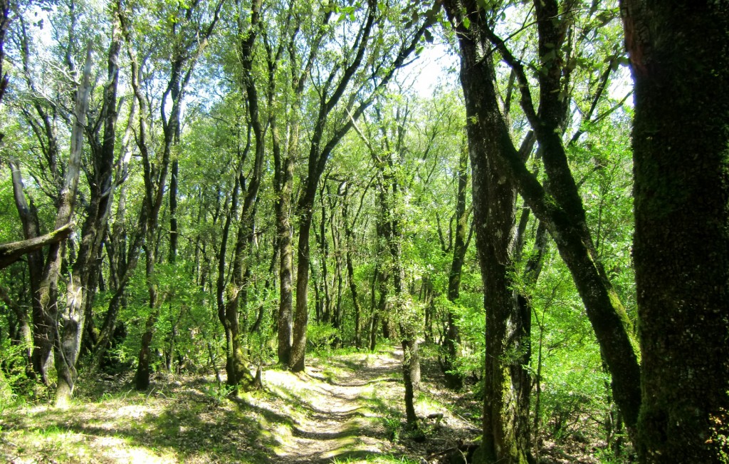 Desde este punto nuestro recorrido continua durante aproximadamente 1,5 km por la pista forestal cerrada al trafico procedente de la carretera de acceso al pantano de Calcón, hasta llegar al desvio señalizado al Huevo de San Cosme.