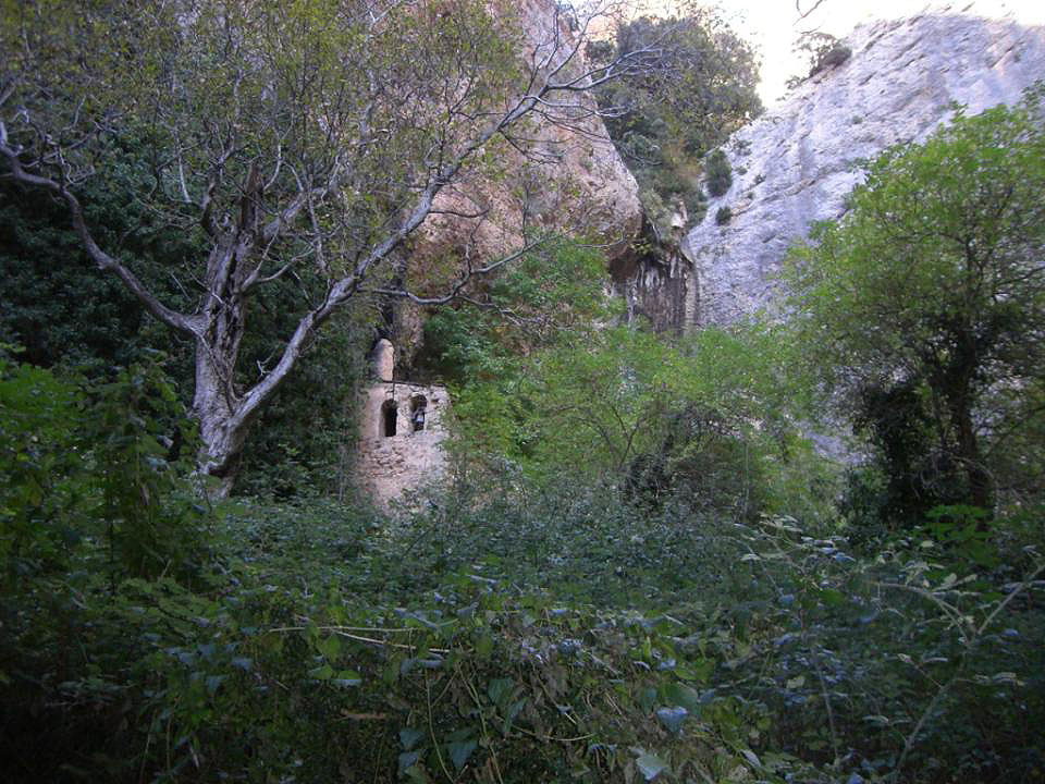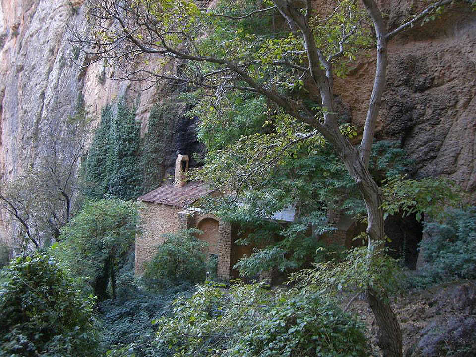 Llegados al fondo del barranco, unicamente nos queda ascender durante unos cientos de metros siguiendo el cauce del barranco entre espesa vegetación hasta llegar al encantador paraje que rodea a la ermita. En la entrada a la ermita nos encontramos una panel que explica la interesante historia de esta ermita.