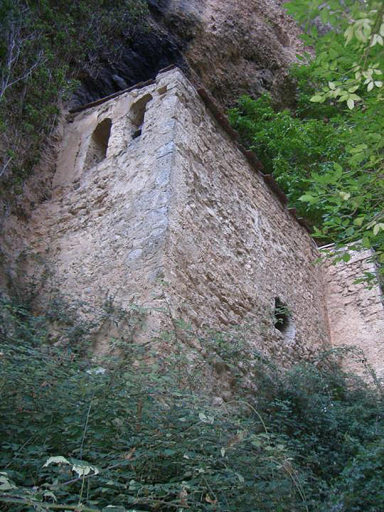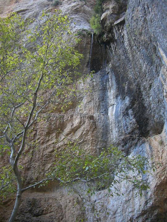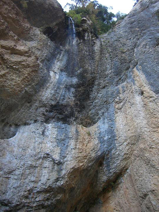 Junto a la ermita cae desde gran altura una singular cascada cuyo caudal habitualmente es mas bien escaso.