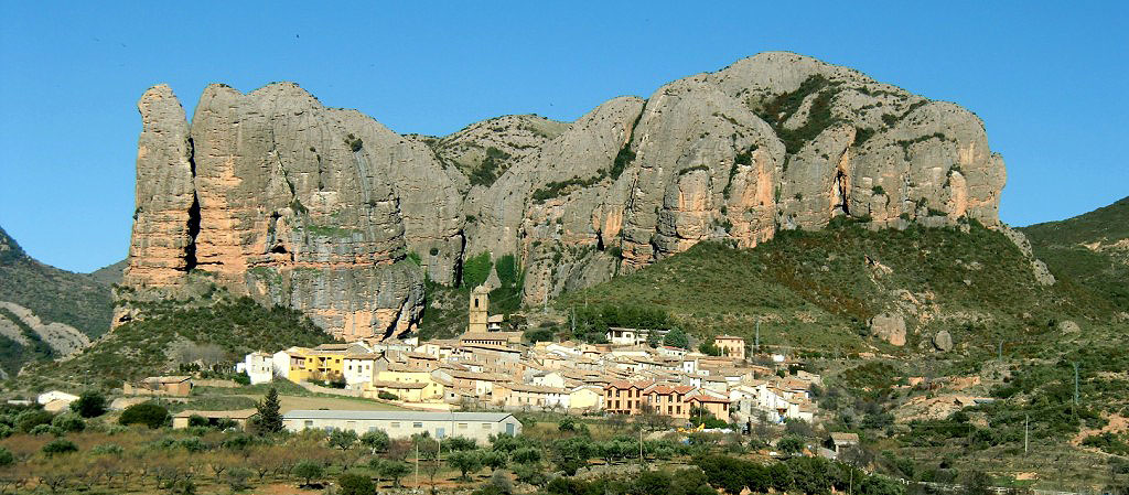 Vista panorámica de los Mallos de Agüero desde el mismo pueblo.