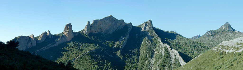 Vista panoramica de los Mallos de Agüero desde el mismo pueblo.